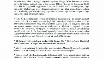- Hirdetmény - Csóka Tivadar